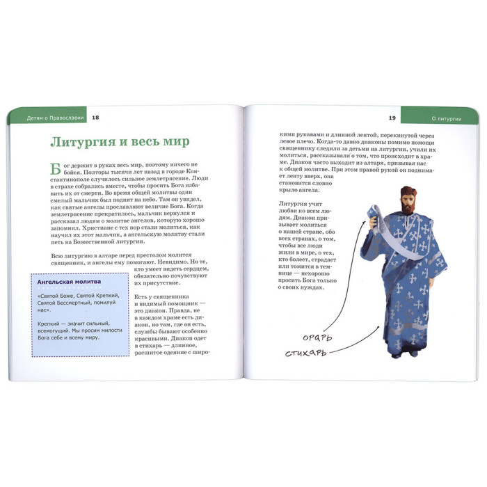 Описание: В книгах серии «Детям о Православии» разговор идет о самом важном, о вере, о том, что дает нам силу духа и возможность прожить счастливую жизнь. Дети с удовольствием читают эти издания, в них все рассказано просто и интересно, а цветные картинки и перевод основных молитв делают текст еще более понятным.