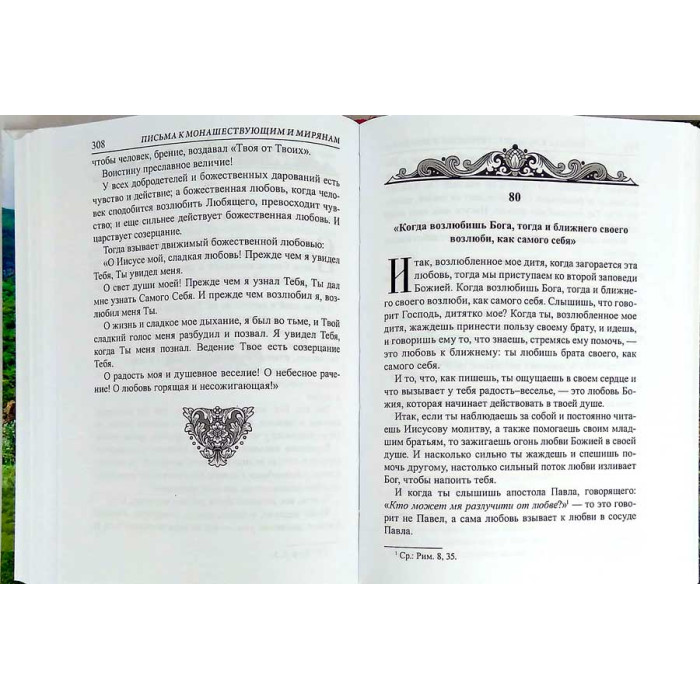 В первой части книги собраны письма духоносного Старца к мирянам и монашествующим. Во второй подана переписка с пустынником-исихастом. Третья часть учит мысленному деланию и борьбе с помыслами. О том, как просвещается человек божественной благодатью, как она действует и когда отнимается. Старец беседует с читателем о совершенной любви и предупреждает о прелести. На все интересующие его вопросы найдет человек ответ на страницах этой душеполезной книги.